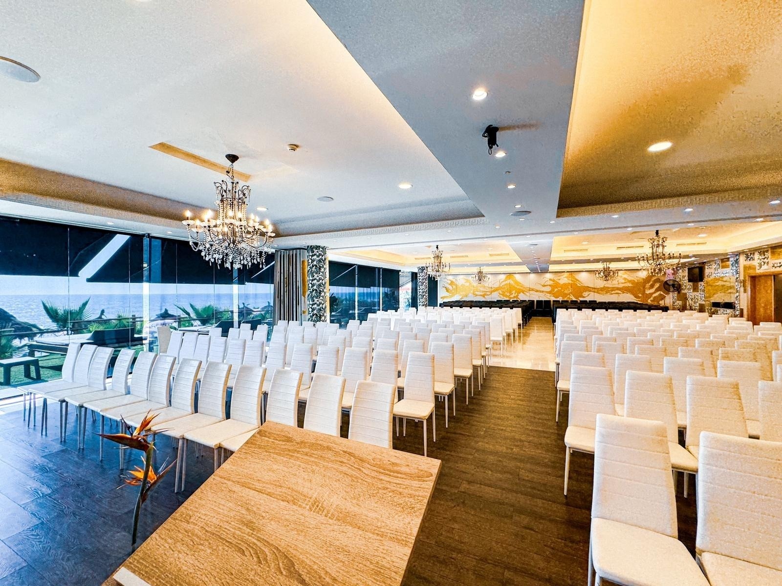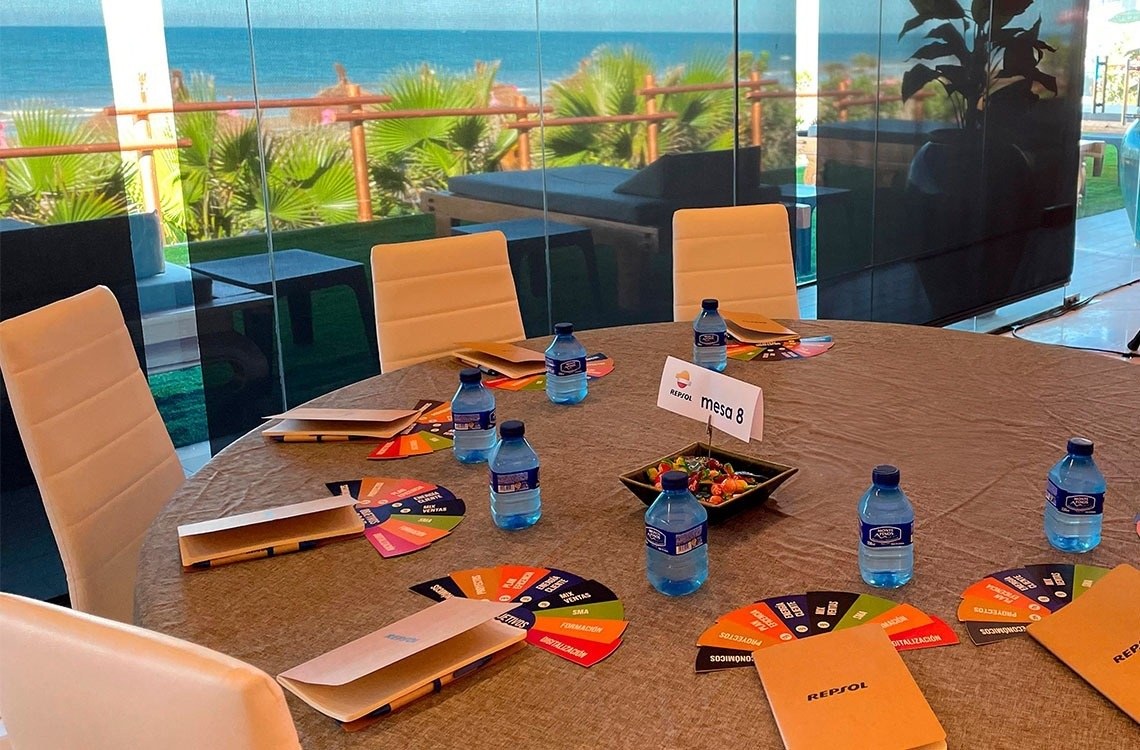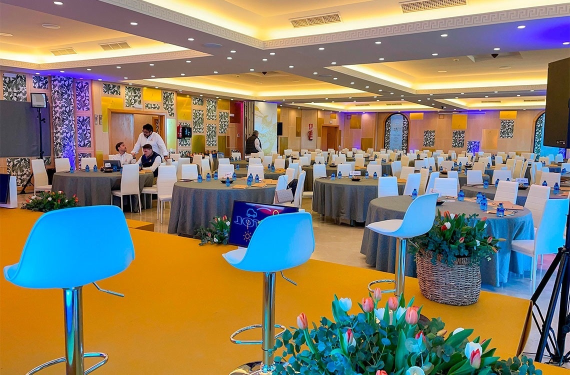 Un espacio versátil y elegante, diseñado para acoger reuniones empresariales y eventos corporativos en una ubicación privilegiada frente a la Playa de Doñana.